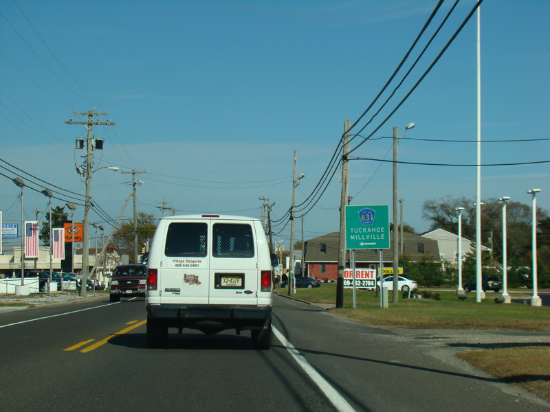 Welcome to Marmora! Tuckahoe Road (CR 631) begins on the left at a traffic light.