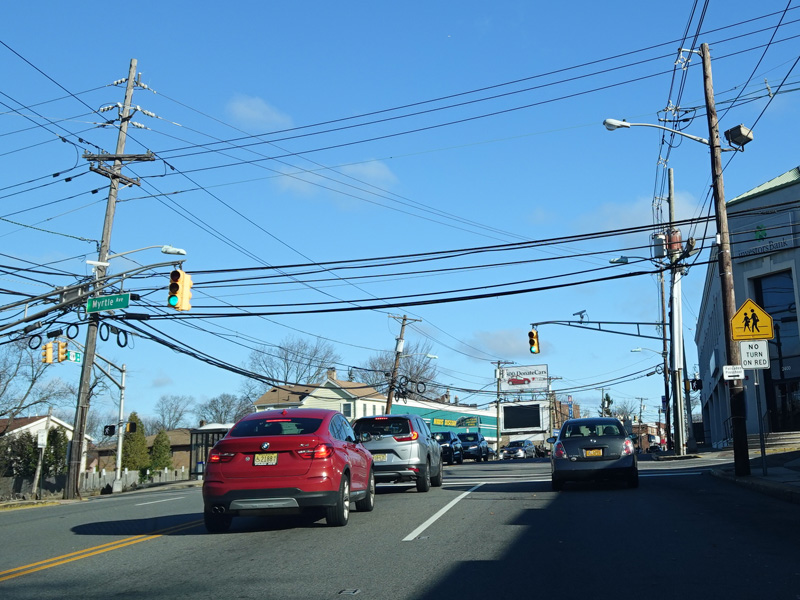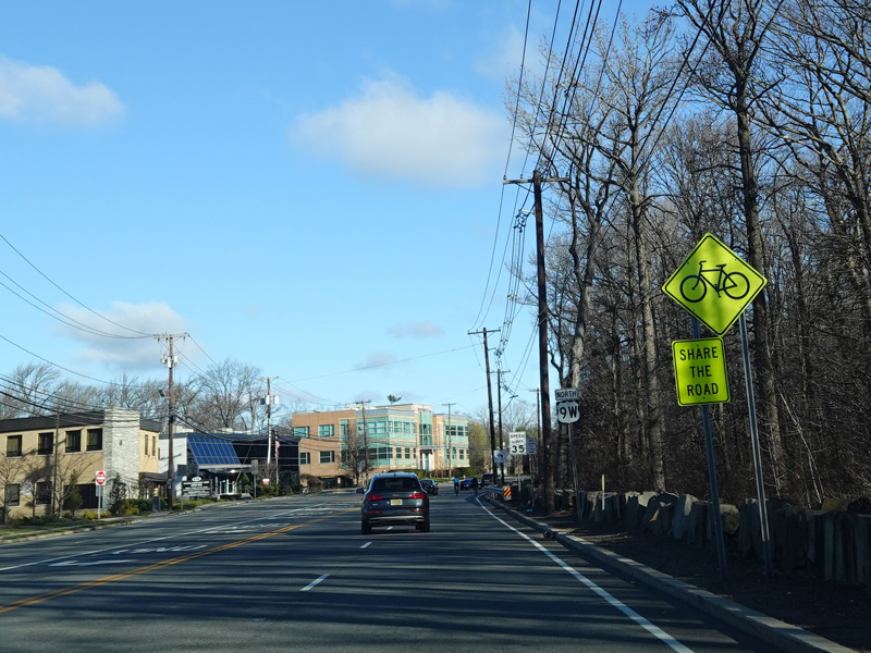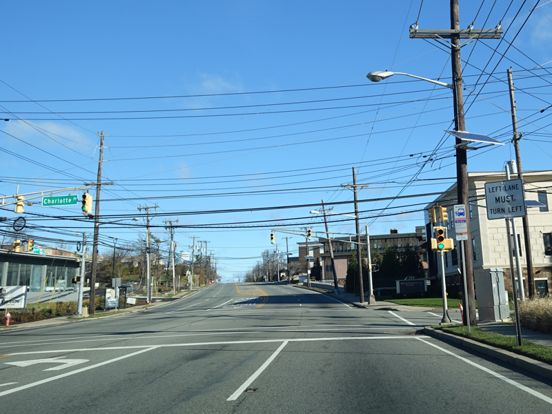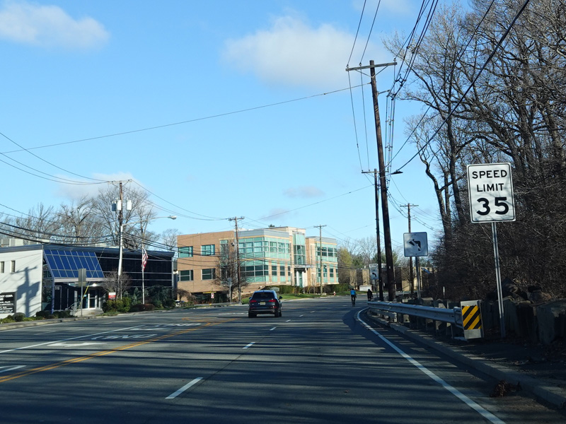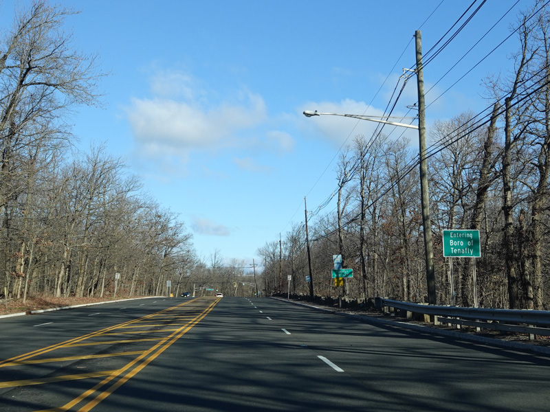 Welcome to the Borough of Tenafly! There is a traffic light at East Clinton Avenue (CR 70), after which Sylvan Avenue narrows down to two lanes.