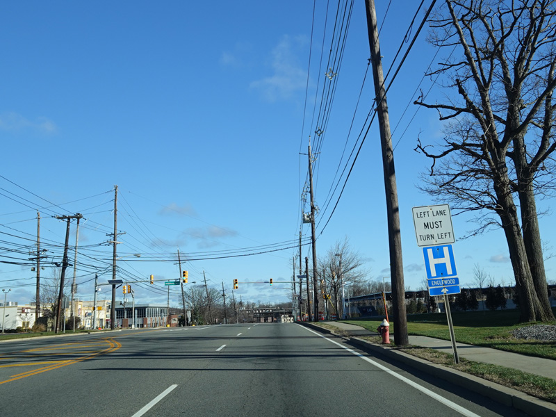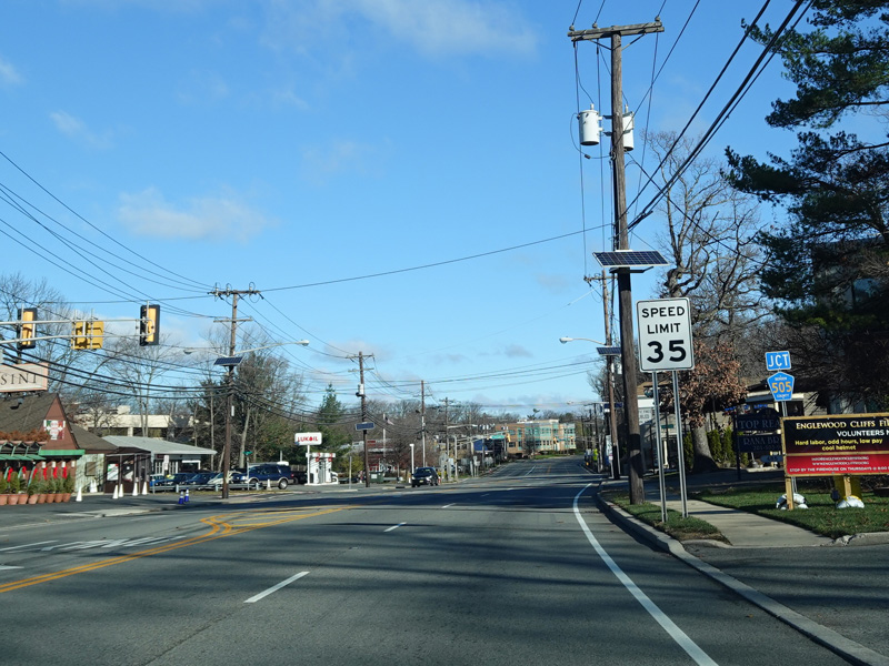 Sylvan Avenue continues north through Englewood Cliffs. There are traffic lights at Hollywood Avenue and Sage Road.