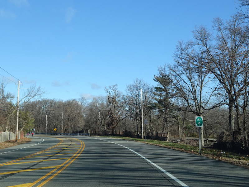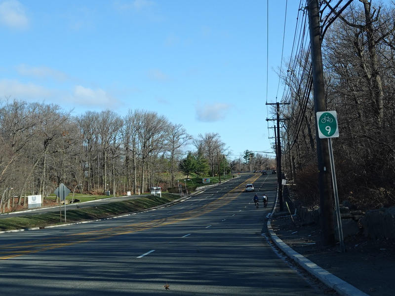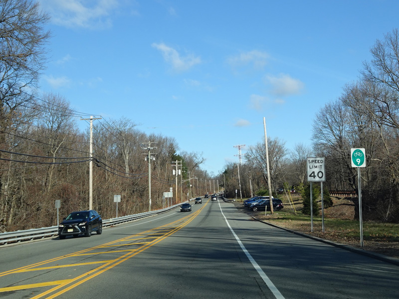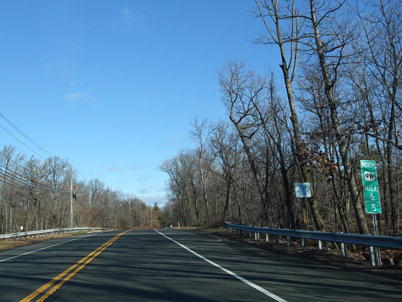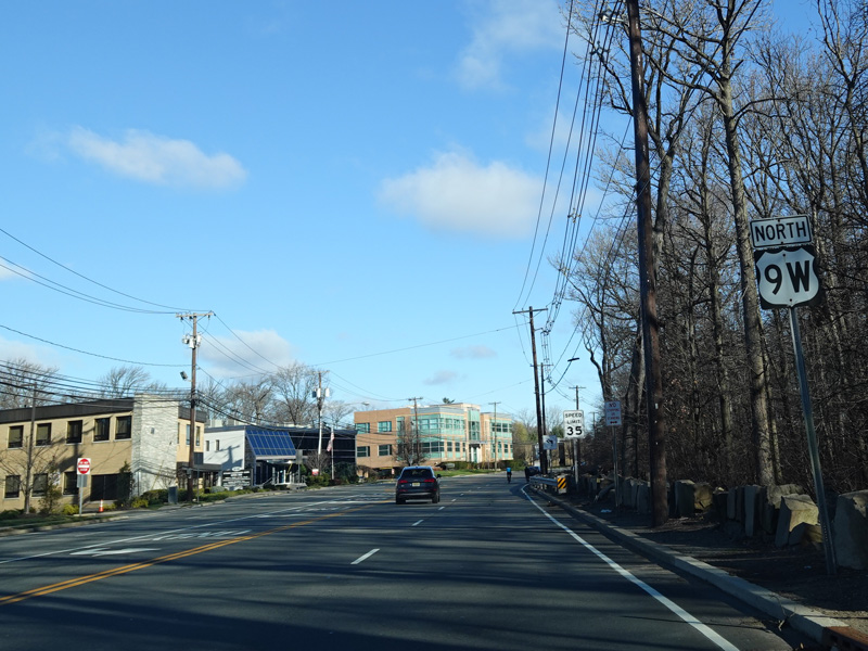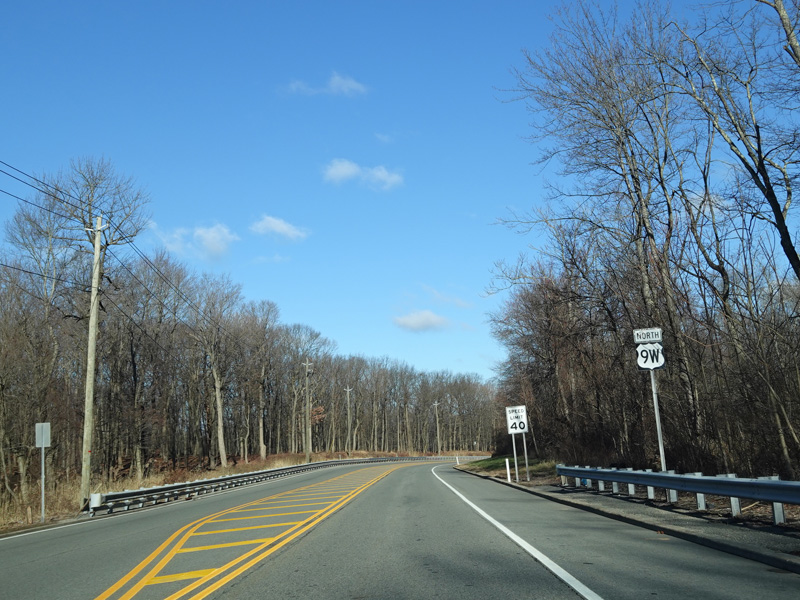 US 9W continues north through Alpine. Ruckman Road begins on the left along this stretch.