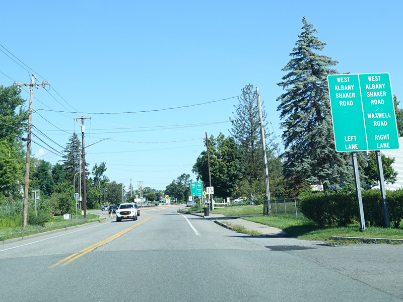 Albany Shaker Road runs northwest as a four-lane undivided road.
