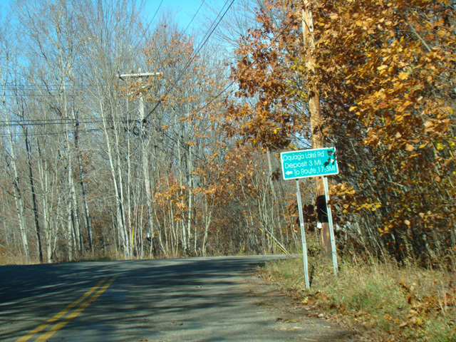 Oquaga Lake Road is a semicircular route looping around Oquaga Lake. It begins at Old Route 17 (CR 28) just east of the southern terminus of NY 41 and runs southeast to the lake. Oquaga Lake Road loops around the lake and then heads northeast to Deposit, where it ends at the border with Delaware County. While there are some signs giving the route number for CR 237, they are few and far between. The entire length is a two-lane undivided road.