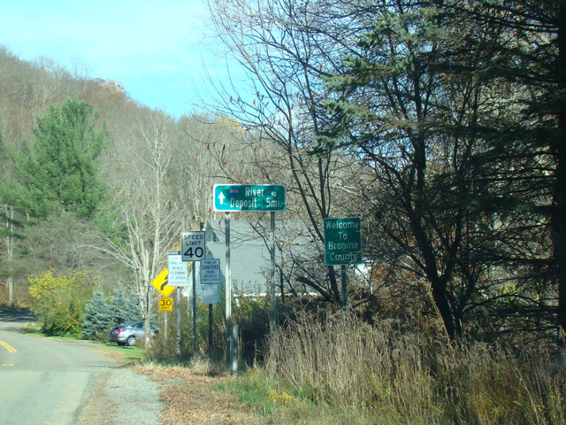 River Road is a north/south route running along the west side of the West Branch of the Delaware River. It begins at the border with Pennsylvania and runs north along the river toward Deposit, ending at Oquaga Lake Road (CR 237). The entire length is a two-lane undivided road.