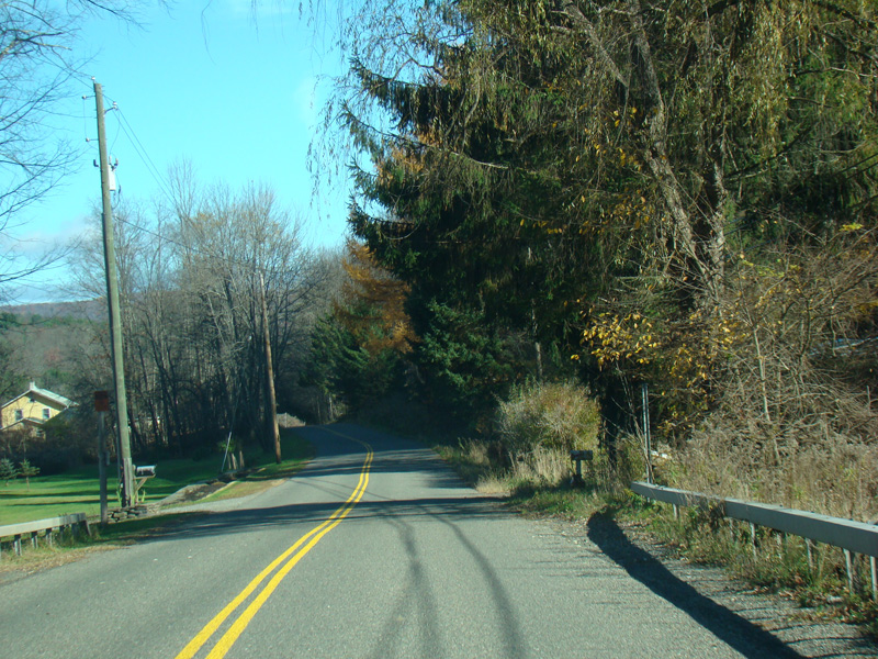 Sherman Creek Road begins at River Road (CR 249) just north of the border with Pennsylvania and runs east, parallel to the state line and just north it, as a two-lane undivided road.