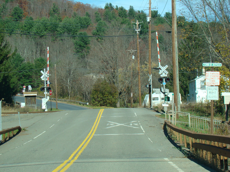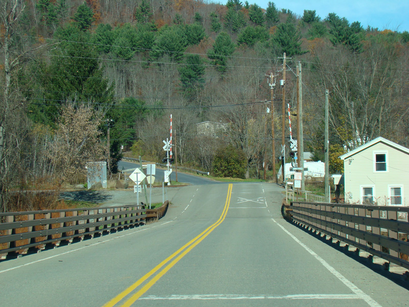 CR 4 ends here at a bridge over the West Branch of the Delaware River to Delaware County. The road continues straight ahead under town jurisdiction for one block to end at the Quickway (NY 17/Future I-86).