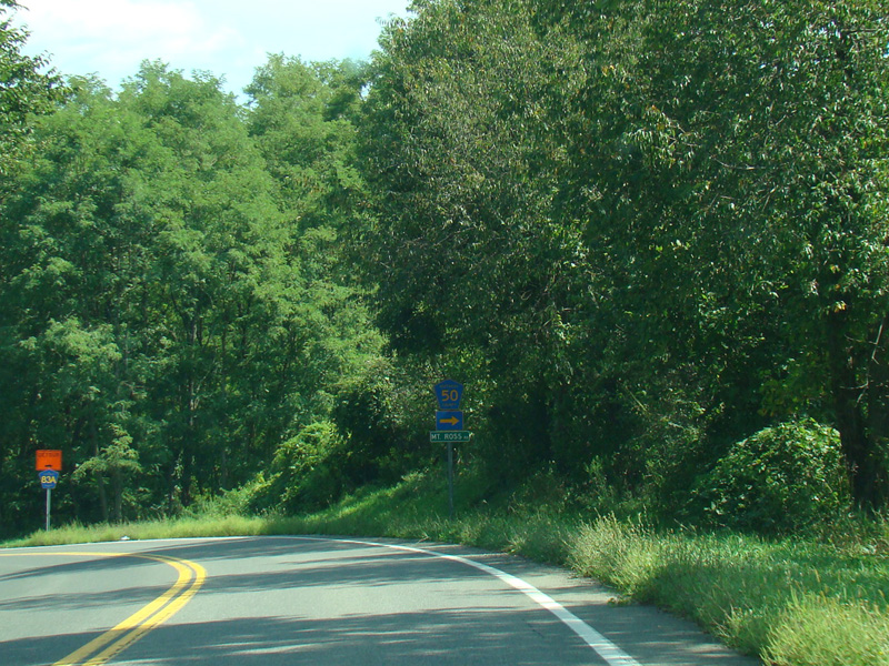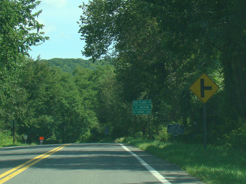 Jackson Corners Road ends at a three-way intersection along the Dutchess-Columbia county line. Bear right for Mount Ross Road (Dutchess CR 50). Bear left for Columbia CR 7.