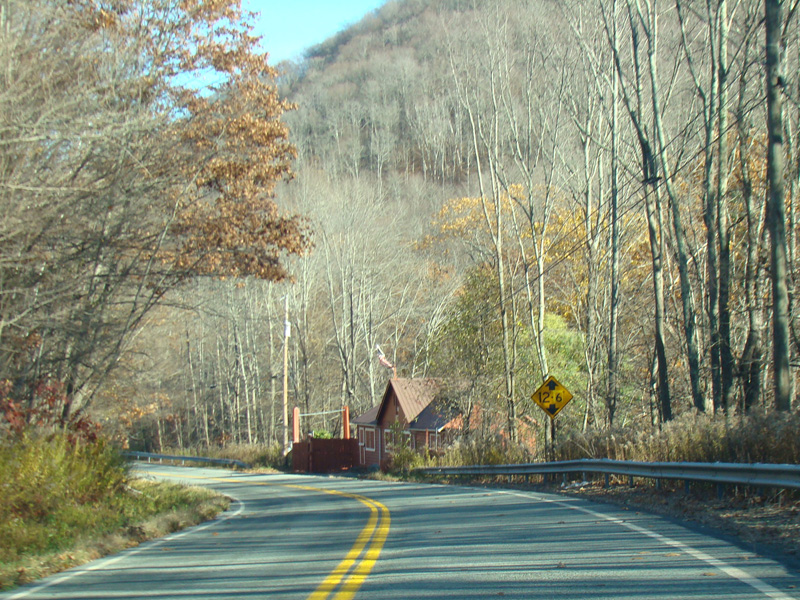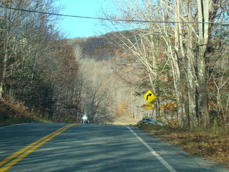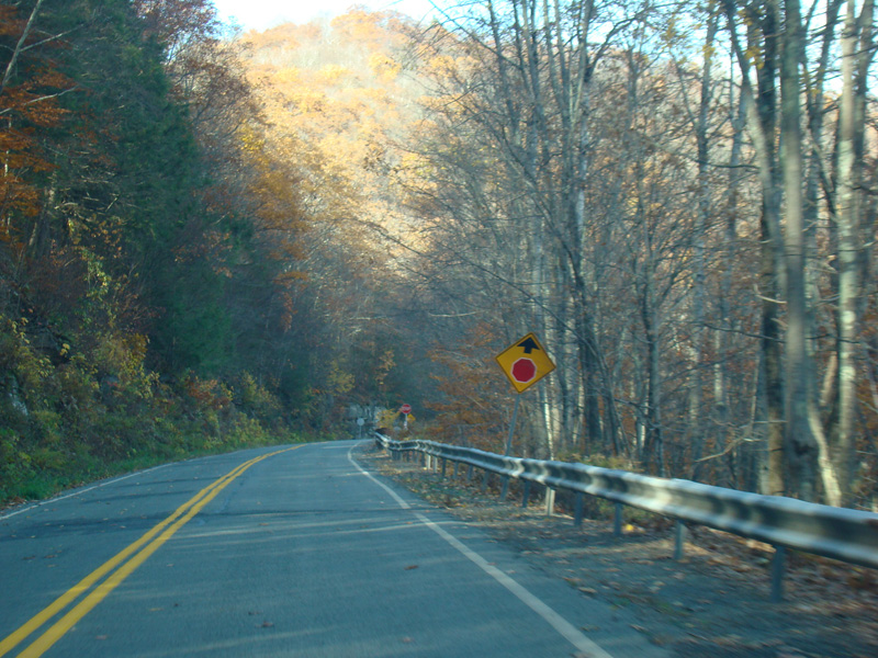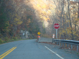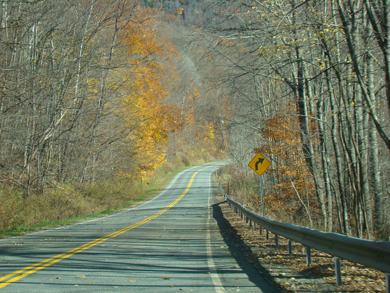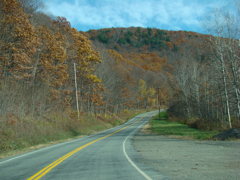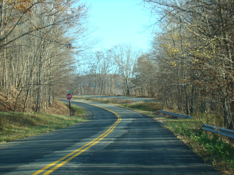 After a short distance, the road ends at a stop sign. Turn left to stay on Old Route 17. Cook Falls Road is to the right.