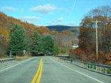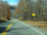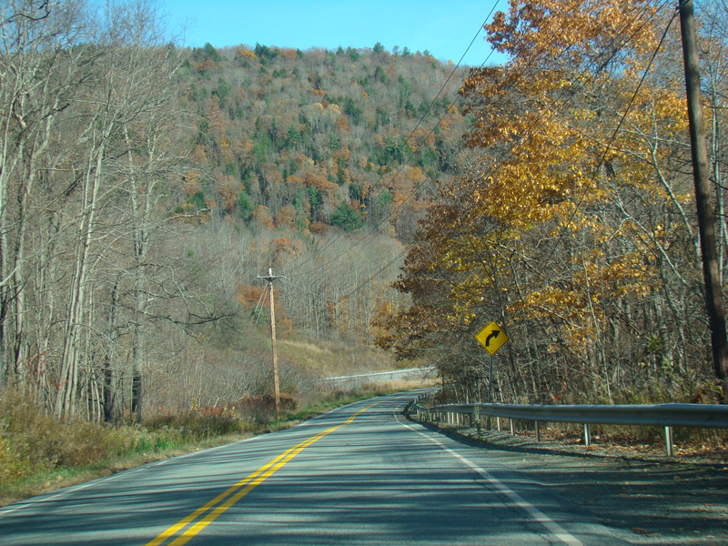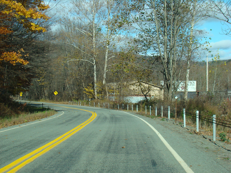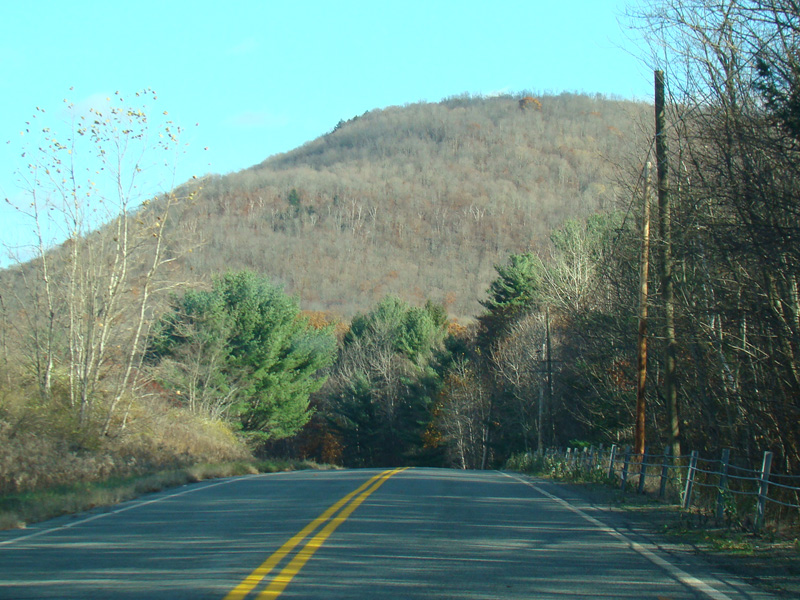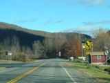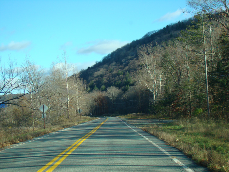 Welcome to Fishs Eddy! Fish Eddy-Sullivan County Line Road (CR 28) begins on the right, but there is no signage for it.