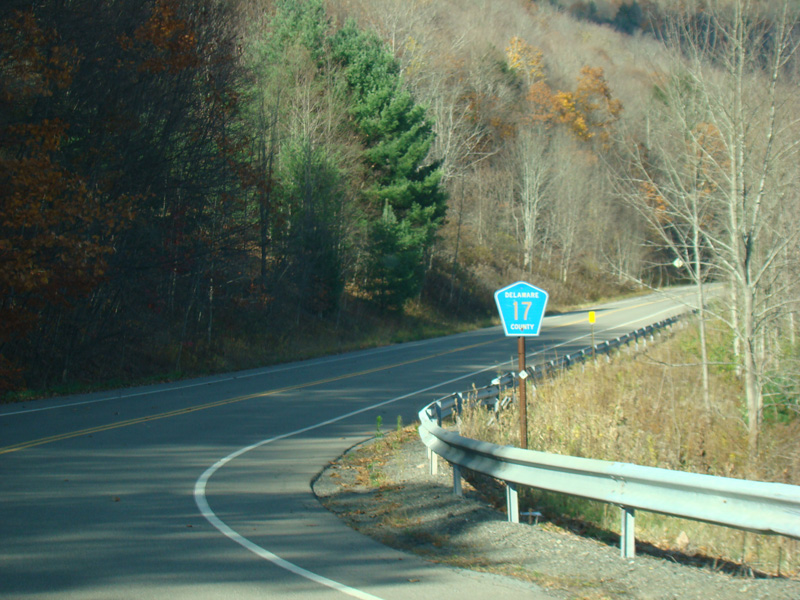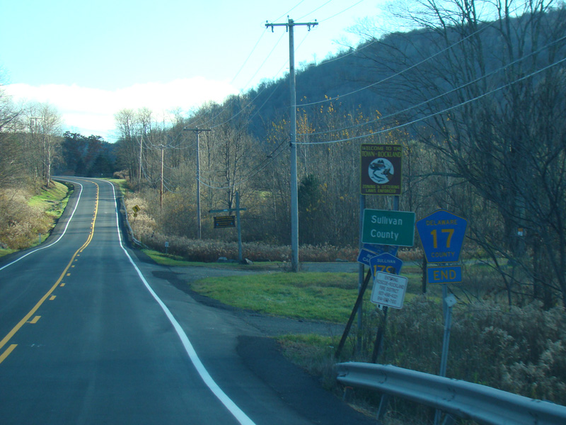 CR 17 ends here at the Delaware-Sullivan county line. Old Route 17 continues straight ahead into Sullivan County as CR 179A.