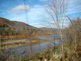 This picture shows the East Branch of the Delaware River as observed from the south side of the one-lane bridge on Fish Eddy-Sullivan County Line Road.
