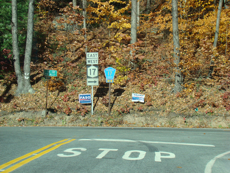 There is a one-lane bridge over the East Branch of the Delaware River.