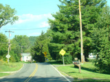CR 1 ends at the border with Connecticut. There is a pavement change but no signage for the state line. Sharon Station Road continues straight ahead as a local street.