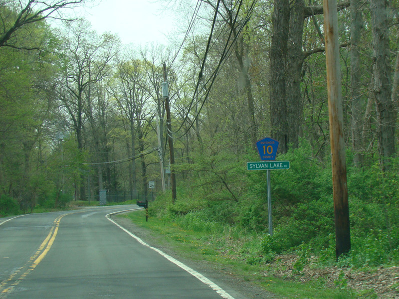 Sylvan Lake Road begins at Beekman Road (CR 9) in Hopewell Junction and runs north as a two-lane undivided road. Sylvan Lake is along the left side of the road.
