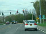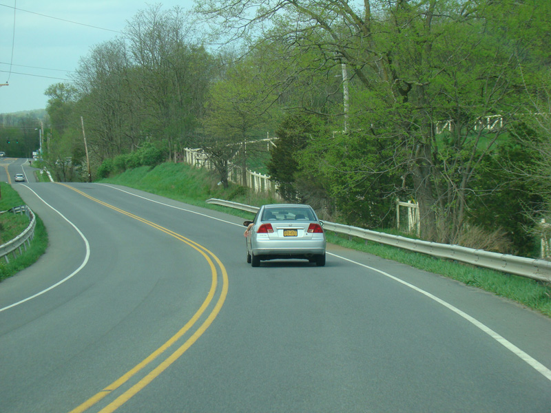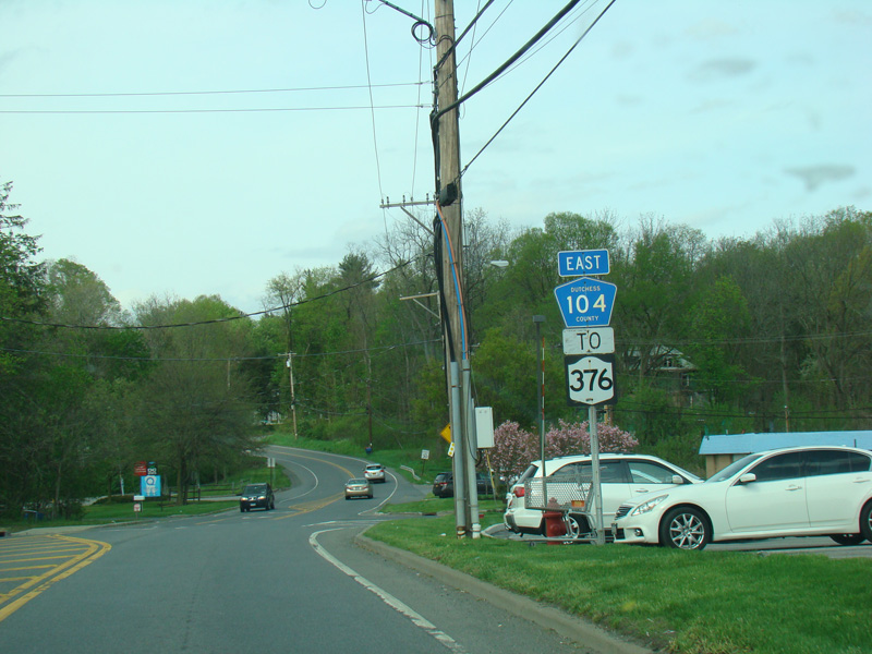 There is a pair of traffic lights at the eastern terminus. Turn right at the first light for All Angels Hill Road (CR 94). New Hackensack Road ends at the second light at NY 376. Turn left to go north or right to go south.