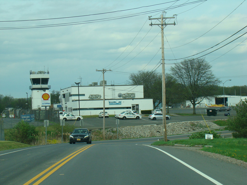 New Hackensack Road runs east along the southern boundary of Hudson Valley Regional Airport.
