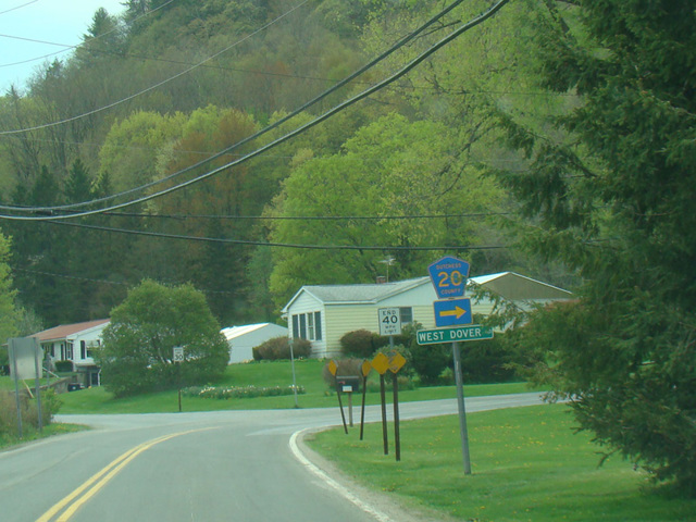 CR 20 is a north/south route from Pawling to Wingdale. It begins at a stop sign at Lakeside Drive in Pawling, just south of the village line. For most of its length, it is known as West Dover Road. It runs north for about five miles before changing names to become Hoags Corner Road and ending at Pleasant Ridge Road (CR 21). The entire length is a two-lane undivided road.