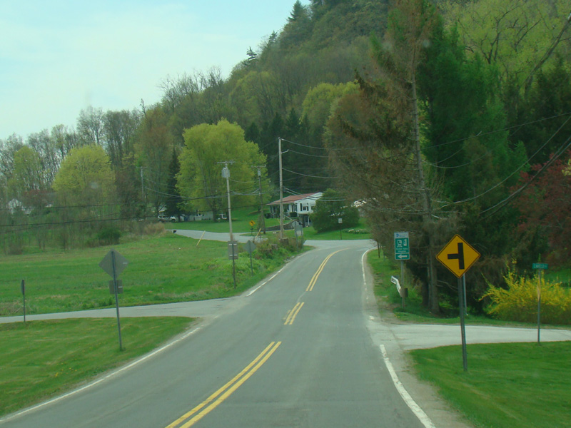 Hoags Corner Road begins at Pleasant Ridge Road (CR 21) in Wingdale and runs south as a two-lane undivided road.