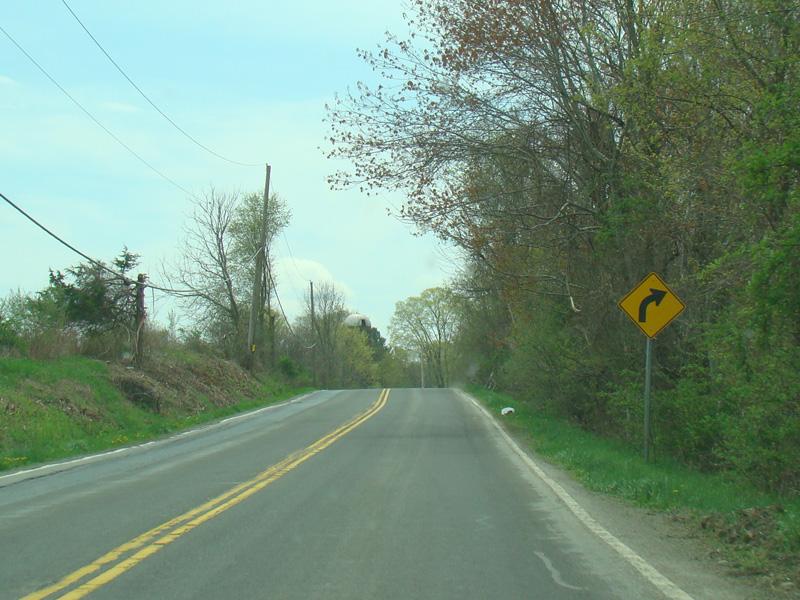 Hoags Corner Road curves to the right and changes names to become West Dover Road.