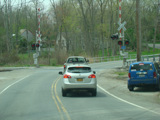 There is a railroad crossing at the Harlem Line of the Metro-North Railroad.