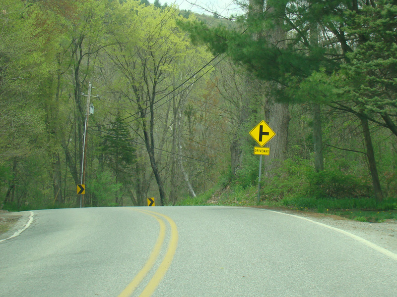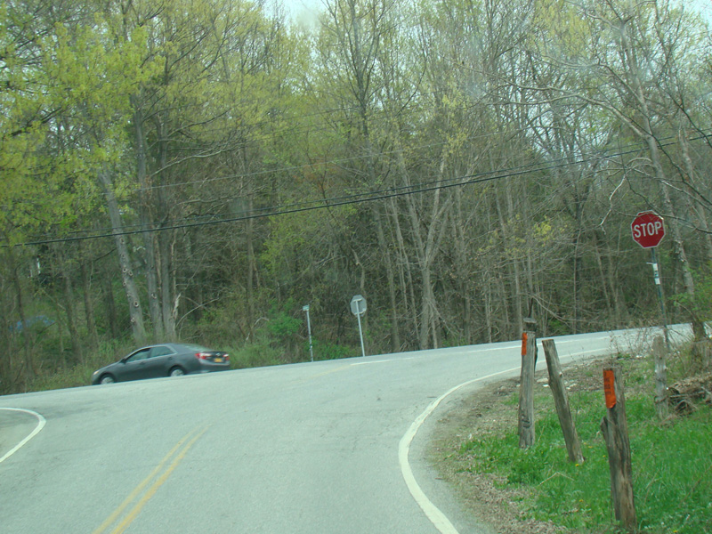 Dover Furnace Road ends at a stop sign at NY 22. Turn left to go north or right to go south.