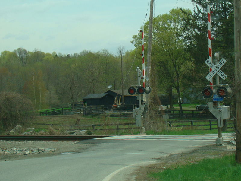 There is a railroad crossing at the Harlem Line of the Metro-North Railroad.