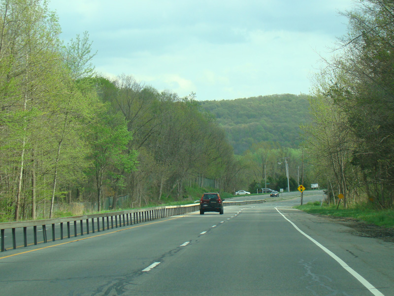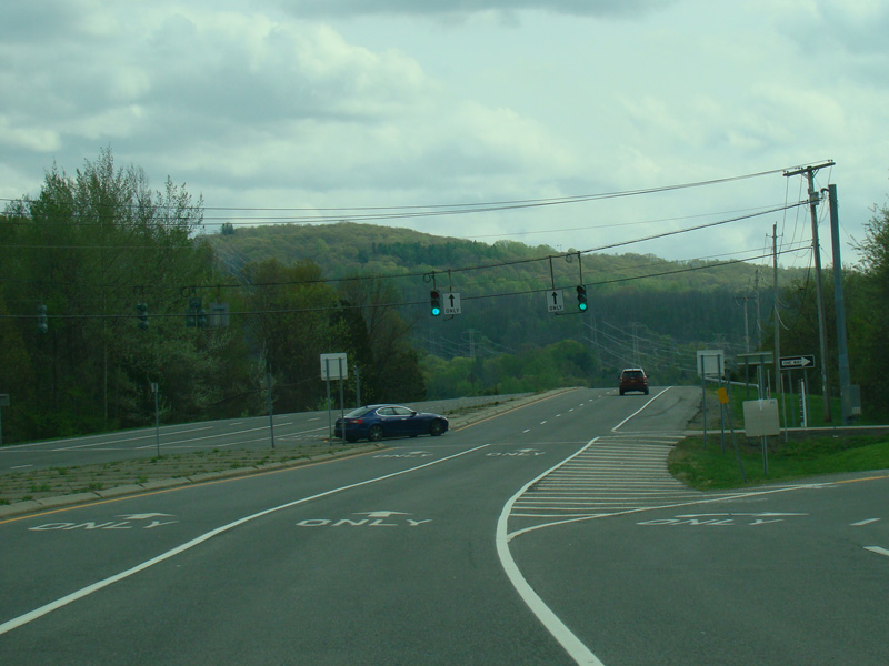 Lime Kiln Road begins at NY 52 and runs south as a four-lane divided highway.