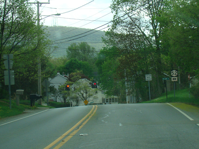 There is a traffic light at Fishkill Avenue (Business NY 52). Turn left to go east or right to go west. The signage erroneously marks this as the mainline of NY 52, rather than the business route.