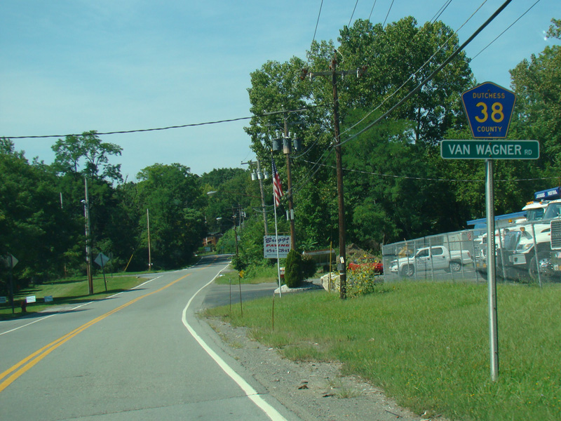 Van Wagner Road takes on the CR 38 designation at a one-lane railroad underpass in Arlington and runs south as a two-lane undivided road.