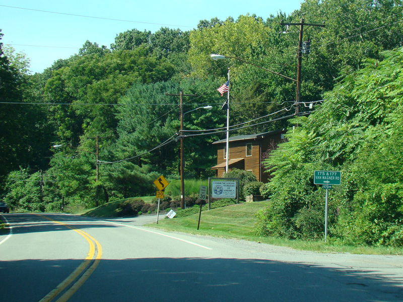 There is a traffic light at Maple Street (US 44/NY 55). Turn right to go east. US 44/NY 55 follows a pair of parallel one-way streets here, so continue straight ahead for the turn to go east.