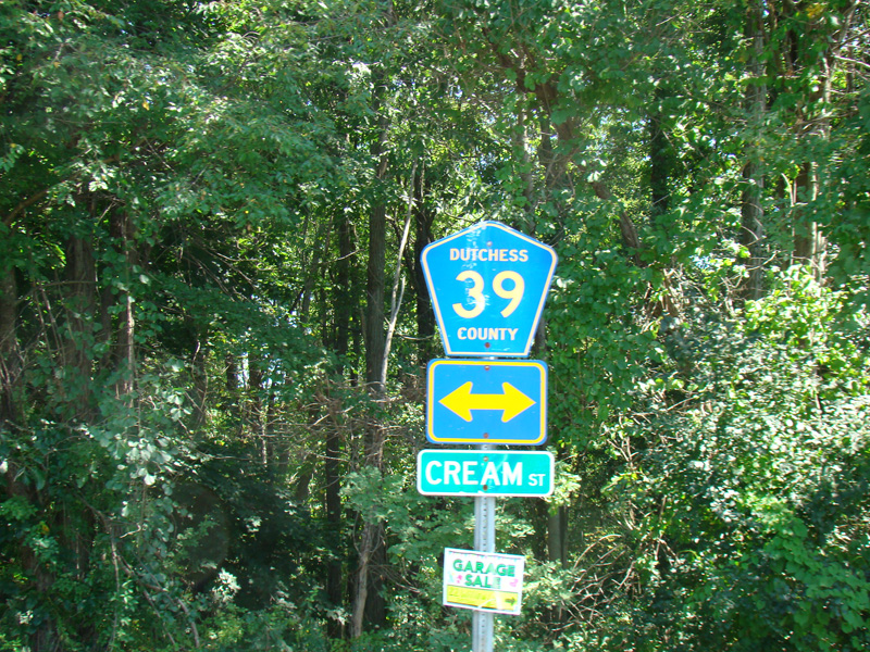 Dutchess Hill Road ends at a stop sign at Cream Street (CR 39). Turn left to go north or right to go south.
