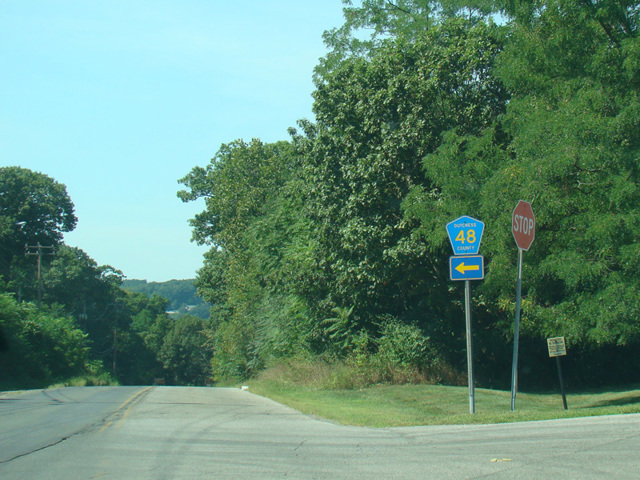 CR 48 is a short east/west route connecting South Road (US 9) to an IBM facility and the Dutchess County Resource Recovery Facility, a recycling plant. It begins at a dead end at the recycling plant and follows Sand Dock Road, a two-lane undivided road. After a short distance, it merges with River Edge Drive to form IBM Road, a four-lane undivided road. After a few blocks, it ends at South Road (US 9).