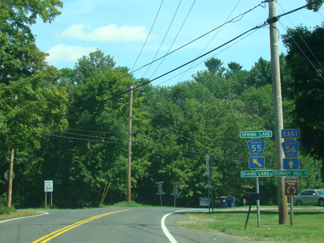 CR 56 is an east/west route in Red Hook. It begins at Albany Post Road (US 9) and runs east as Old Post Road North. After one block, Old Post Road North splits off to the north, and CR 56 continues east as Spring Lake Road. After a little over a mile, Spring Lake Road splits off to the north to become CR 55. CR 56 continues east as Turkey Hill Road for several miles until Jackson Corners Road (CR 50), where it ends. The entire length is a two-lane undivided road.