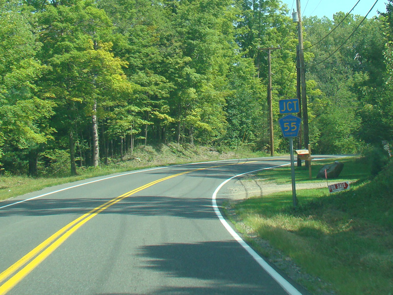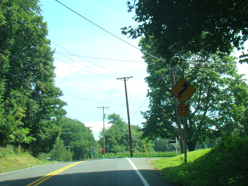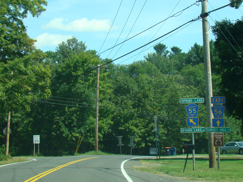 Spring Lake Road splits off to the left to become CR 55. Continue straight ahead onto Turkey Hill Road to stay on CR 56.