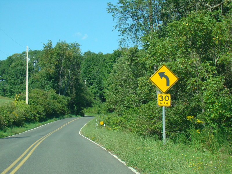 Bean River Road begins at Smithfield Valley Road (CR 83) and runs north as a two-lane undivided road. There is an erroneous sign for US 199. It should be for NY 199 instead.