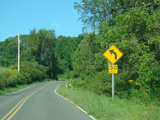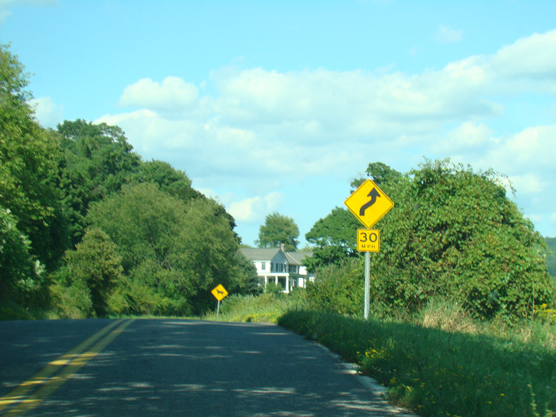 There is a stop sign at NY 199. Turn right to go east or left to go west.