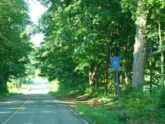 Indian Lake Road is a short north/south route in Millerton. It extends from Coleman Station Road (CR 58) just west of its eastern terminus to Sharon Road (CR 62) at the last intersection before it crosses the border into Connecticut. Indian Lake, the lake from which the road takes its name, is located a short distance to the east, bisected by the state line.