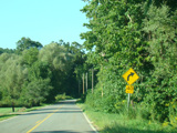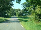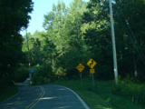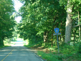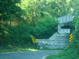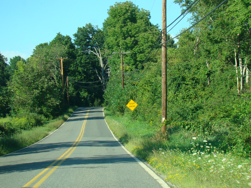 Indian Lake Road passes under a narrow overpass carrying the Harlem Valley Rail Trail.