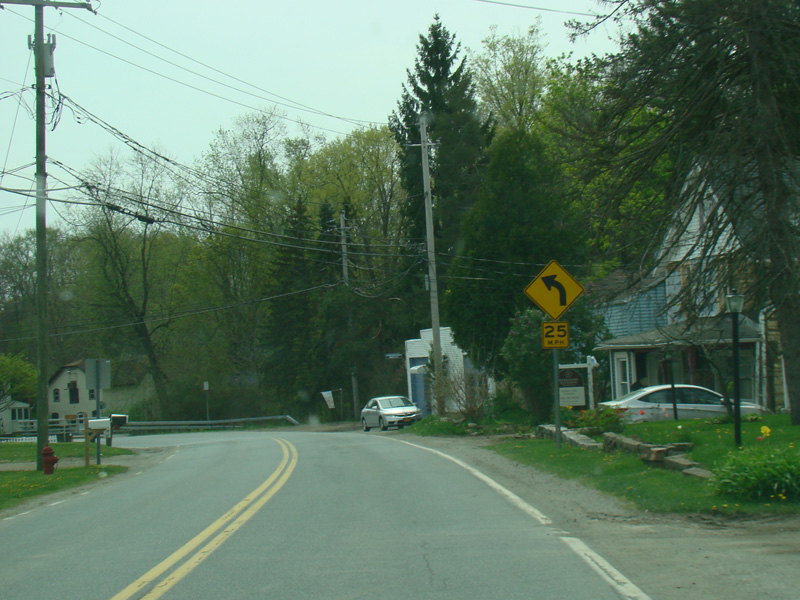 Beekman-Poughquag Road ends at a stop sign at Main Street. Turn right to stay on CR 7. Church Street is to the left.
