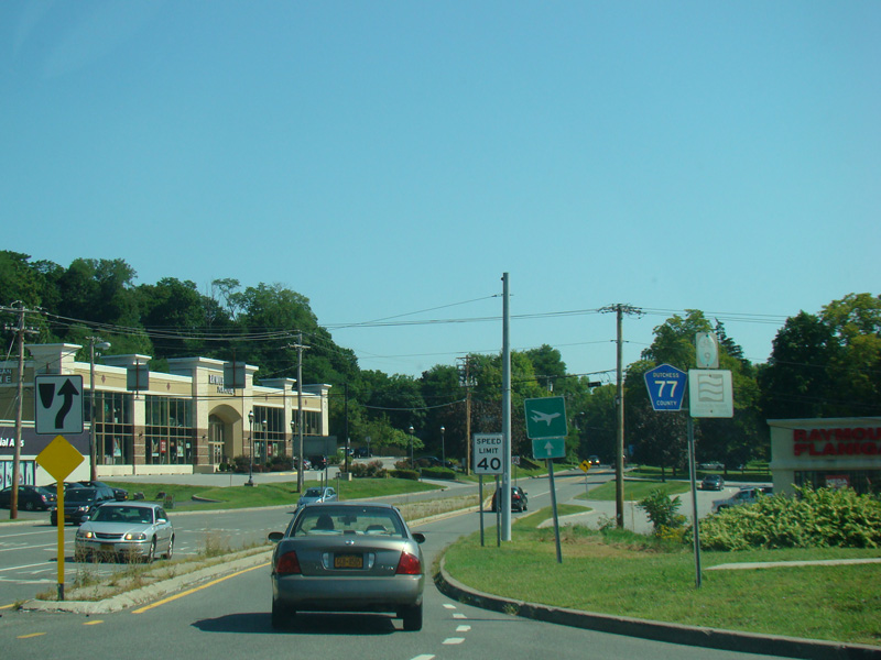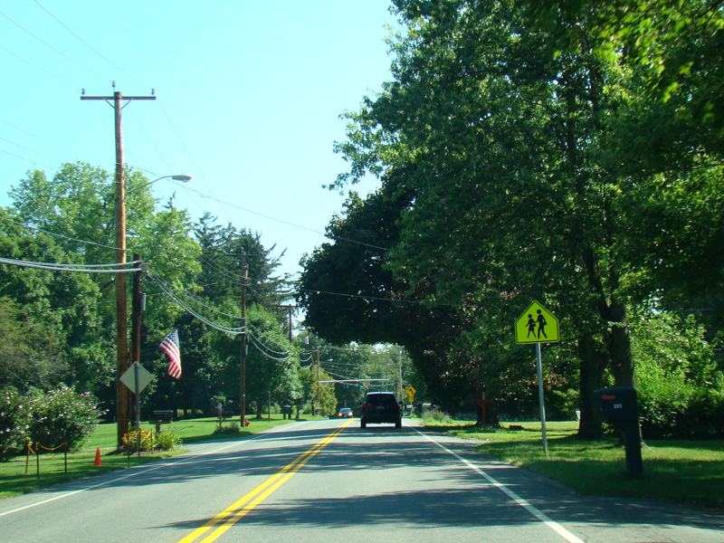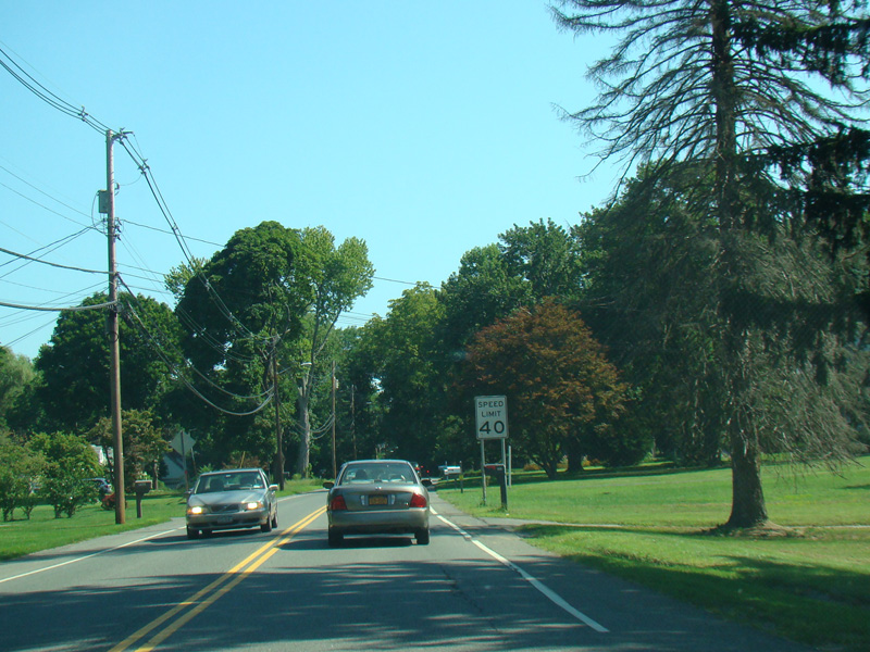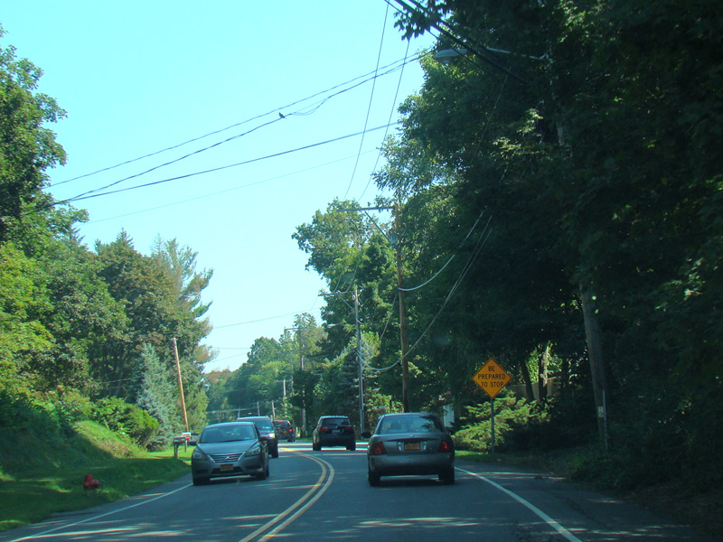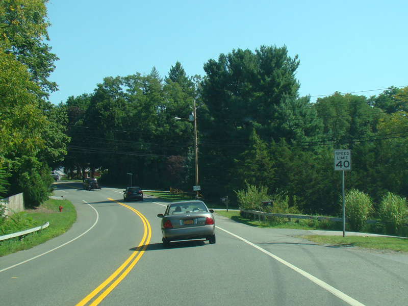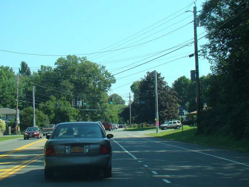 West Main Street (NY 9D) turns into Vassar Road at its northern terminus at South Road (US 9) in Wappingers Falls. It starts out divided, but the median immediately ends.