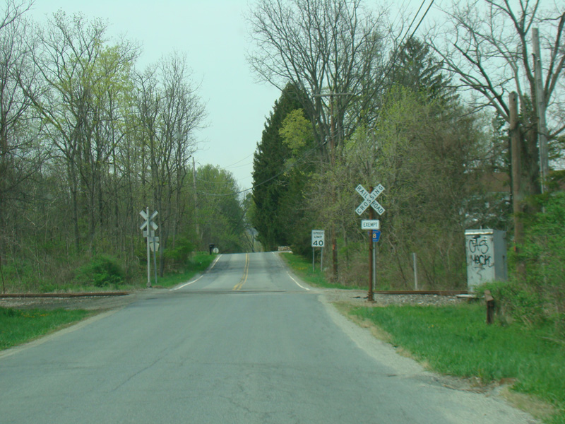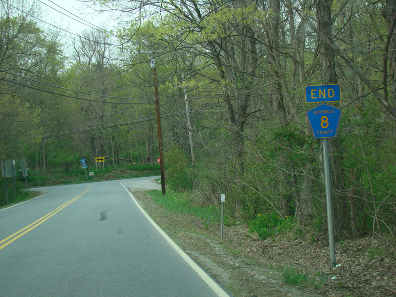 Greenhaven Road takes on the CR 8 designation at a railroad crossing in Stormville and runs north as a two-lane undivided road.