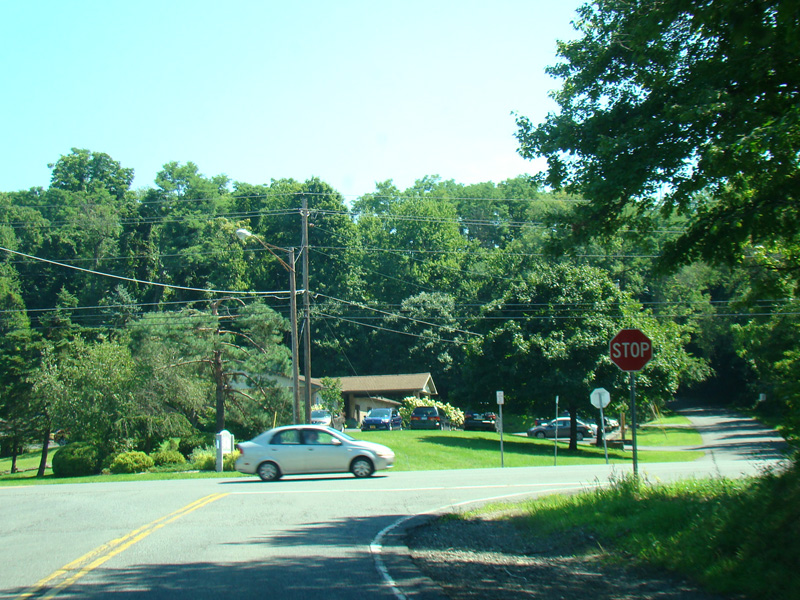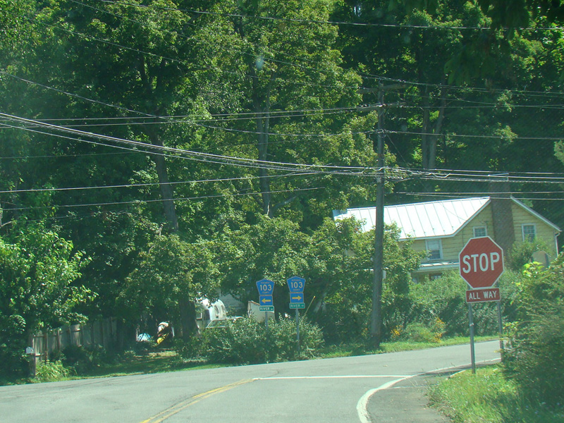 There is a stop sign at River Road (CR 103). Turn left to go north or right to go south.