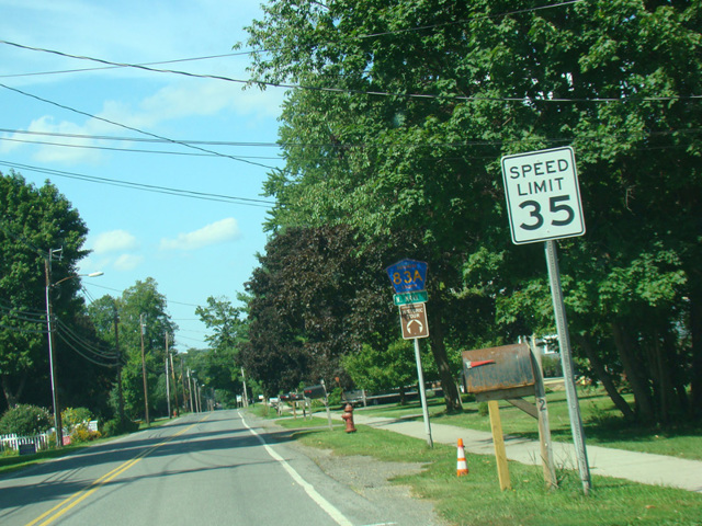 North Main Street is a short north/south route in Pine Plains. South Main Street (NY 82) turns into North Main Street at the western end of the NY 82/NY 199 multiplex. It runs north for just short of a mile to the Dutchess-Columbia county line, where it ends, becoming a local street at the county line.