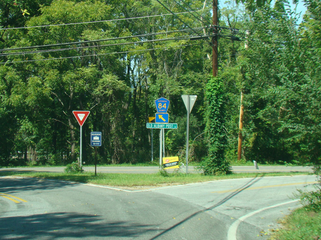 CR 84 is a short east/west route between Albany Post Road (US 9) and NY 9G. It follows Old Albany Post Road north for a short distance and then turns east onto Primrose Hill Road. The entire length is a two-lane undivided road. CR 84 has no connection to I-84, even though both are found in the same county.