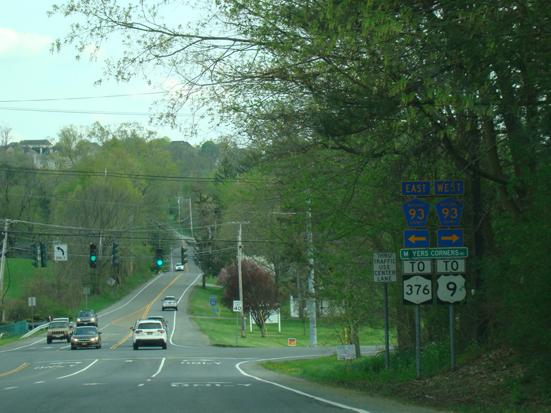 There is a traffic light at Myers Corners Road (CR 93). Turn left to go east or right to go west.