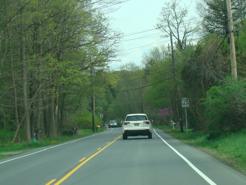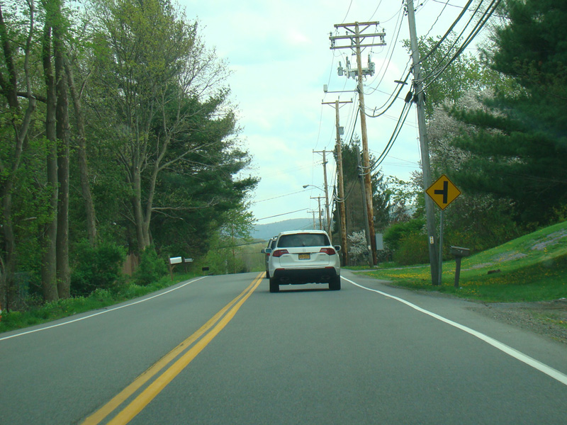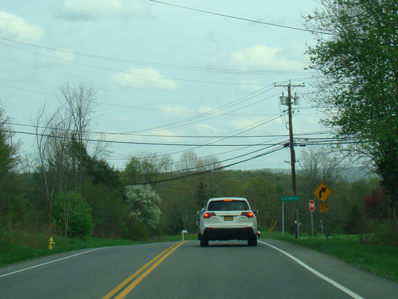 After a short distance, All Angels Hill Road ends at a traffic light at NY 82.