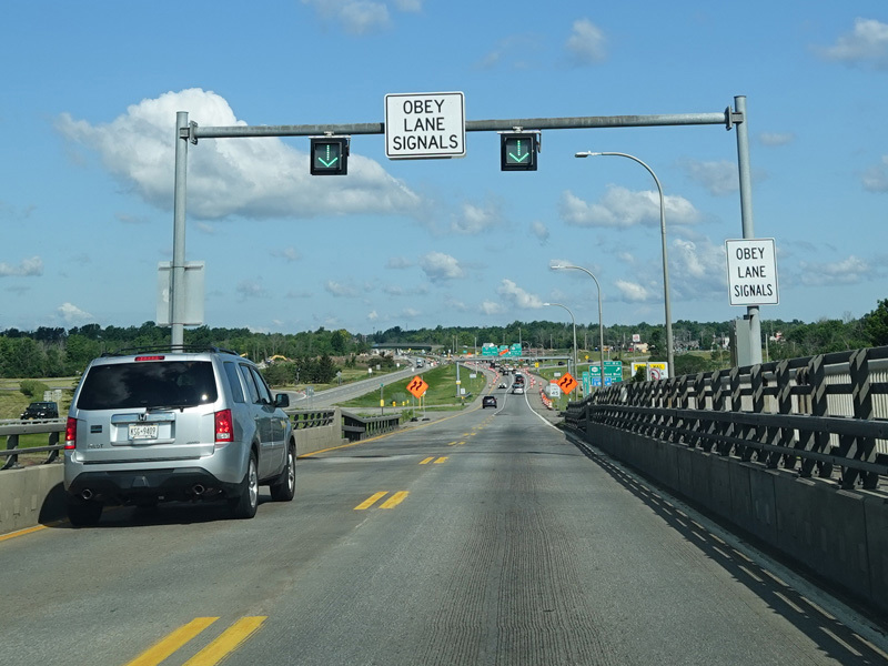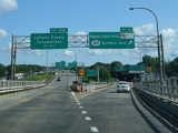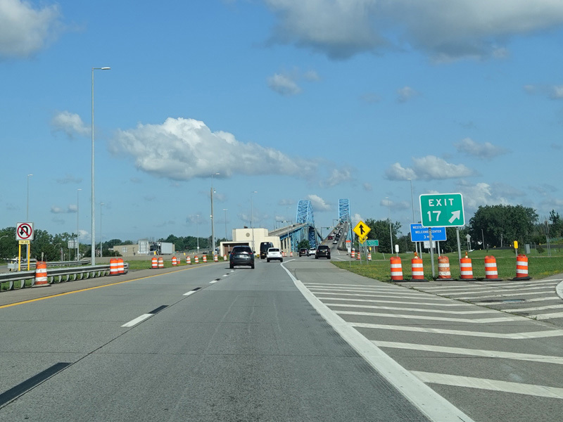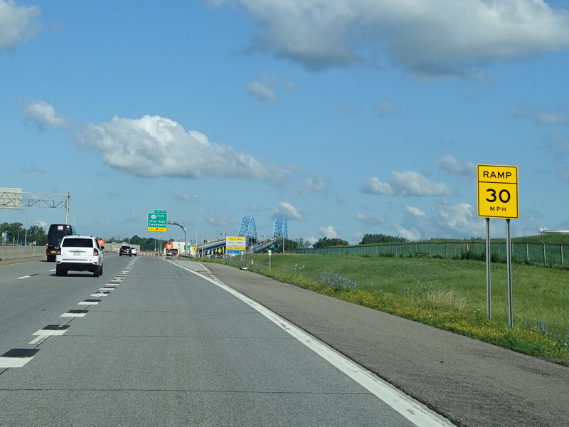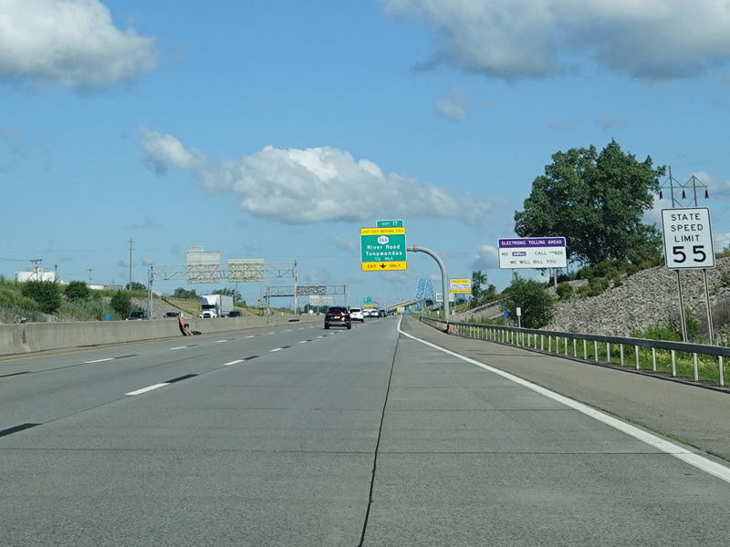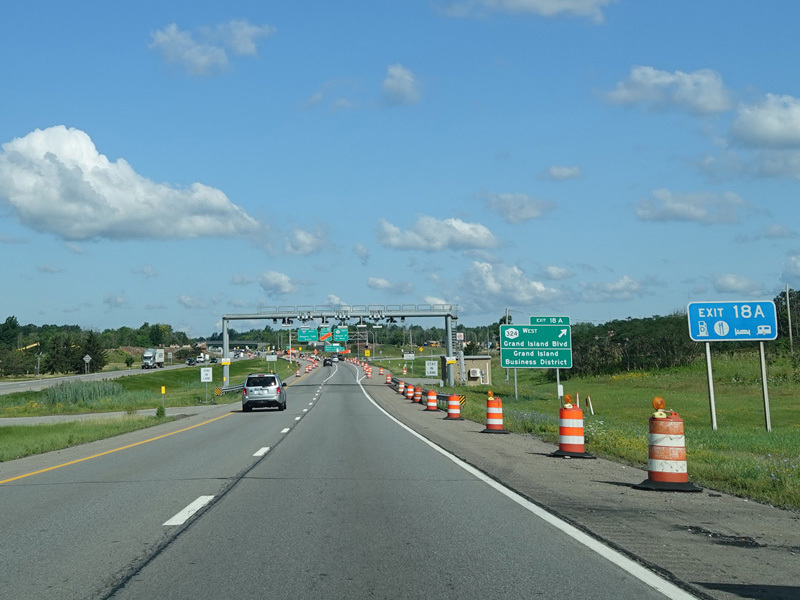 On the other side of the bridge, there is a cashless tolling bridge. Exit 18A is for Grand Island Boulevard (NY 324).