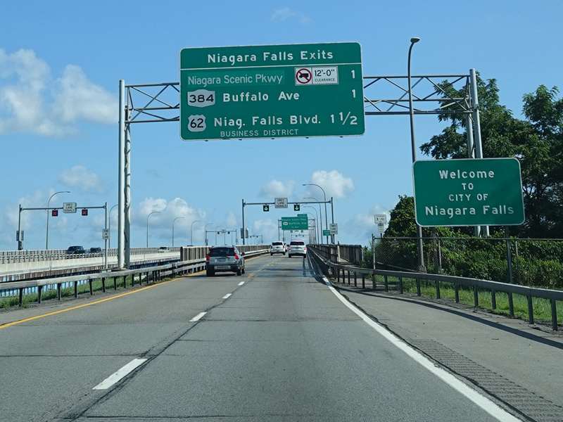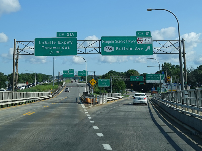 Exit 21 is for the Niagara Scenic Parkway and Buffalo Avenue (NY 384).