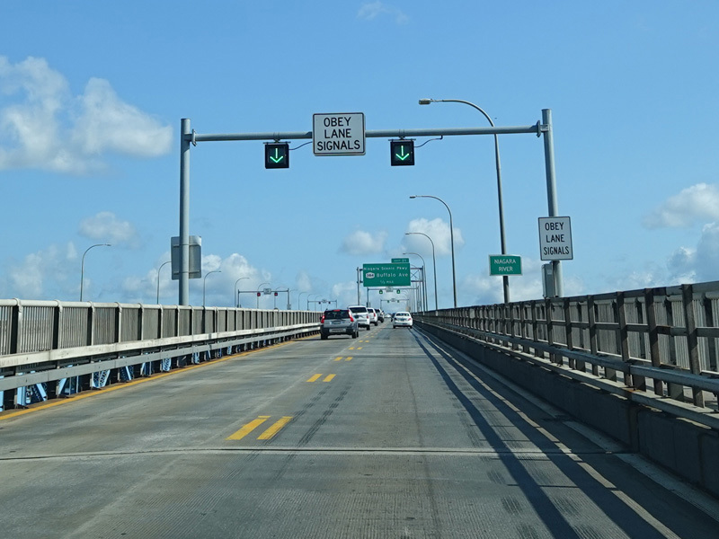 The South Grand Island Bridge carries the Niagara Thruway across the Niagara River to Grand Island.