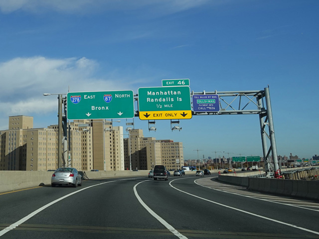 The New York section of I-278 begins at the Goethals Bridge at the New York-New Jersey state line. The first section is the Staten Island Expressway, which crosses Staten Island. At the end of the Staten Island Expressway, I-278 goes over the Verrazano Bridge to Brooklyn, where it becomes the Brooklyn-Queens Expressway. The section immediately after the bridge is also known as the Gowanus Expressway, but the signs all say "Brooklyn-Queens Expressway" so as not to confuse people. The expressway runs to the northeast along the water through Brooklyn. It passes the Battery Tunnel (I-478), the Brooklyn Bridge, the Manhattan Bridge, and the Williamsburg Bridge. It then goes over the Kosciuszko Bridge to Queens, where it has interchanges with the Long Island Expressway (I-495), Queens Boulevard (NY 25), and Northern Boulevard (NY 25A). It merges with the Grand Central Parkway and goes over the RFK Bridge, which was formerly known as the Triboro Bridge, to the Bronx, where it becomes the Bruckner Expressway. It ends at I-95 near the Whitestone Bridge (I-678) and the Throgs Neck Bridge (I-295).
