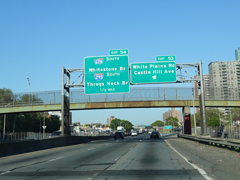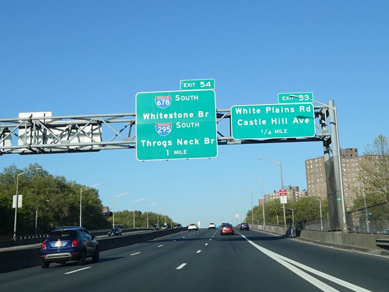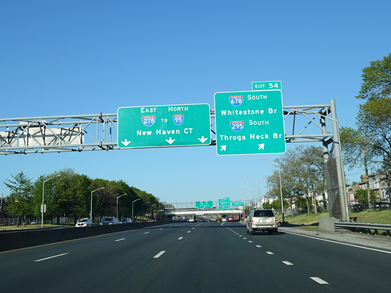Exit 54 is for the Whitestone Bridge (I-678) and the Throgs Neck Bridge (I-295). It also provides access to the Hutchinson Parkway and Zerega Avenue.